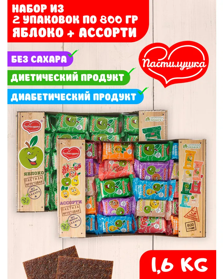 Пастила натуральная Пастилушка комплект Ассорти + яблоко 1600гр