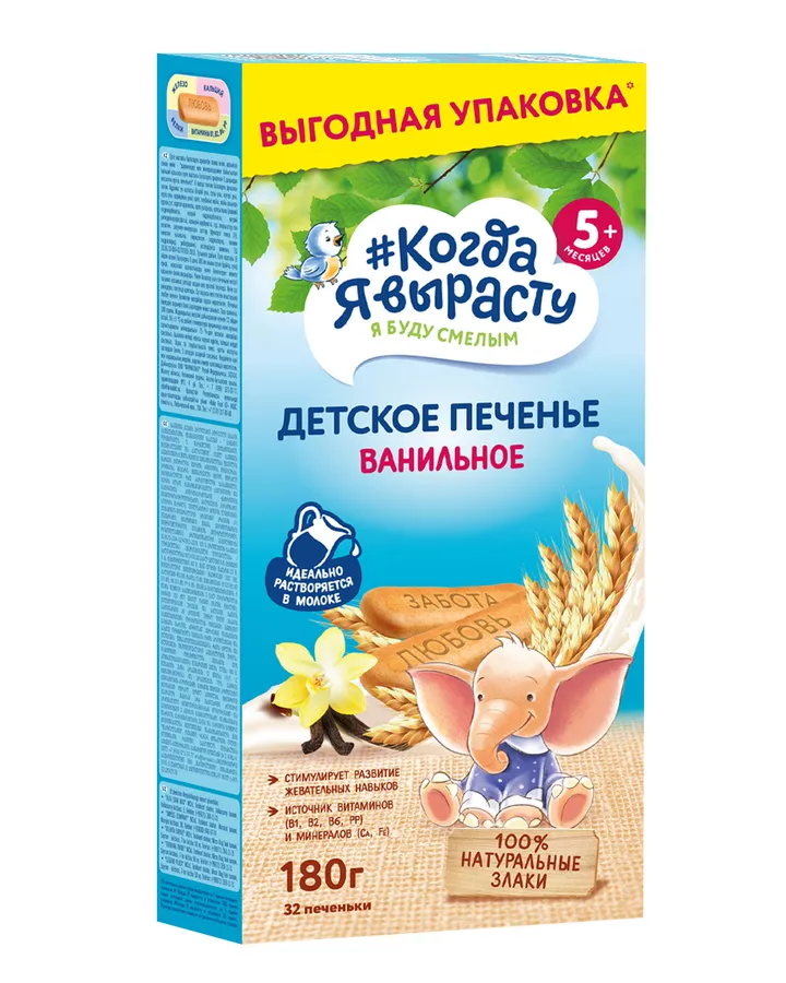 Печенье Когда я вырасту детское ванильное 180г с 5месяцев