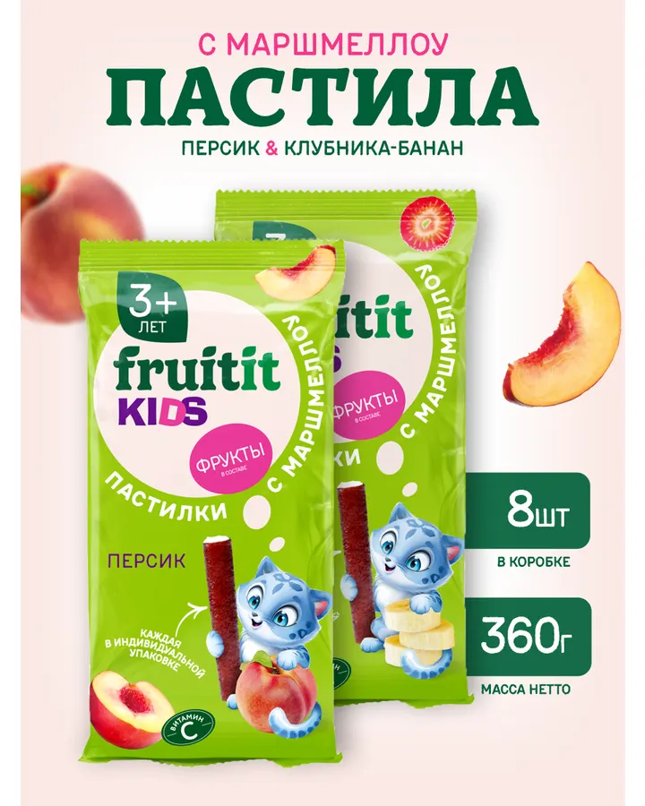 Пастила фруктовая без сахара Правильные сладости Фрутилки Персик 30шт по 15гр