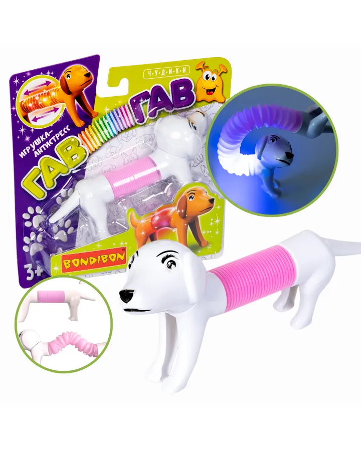Игрушка-антистресс Bondibon пружинка Собачка трубочка с подсветкой