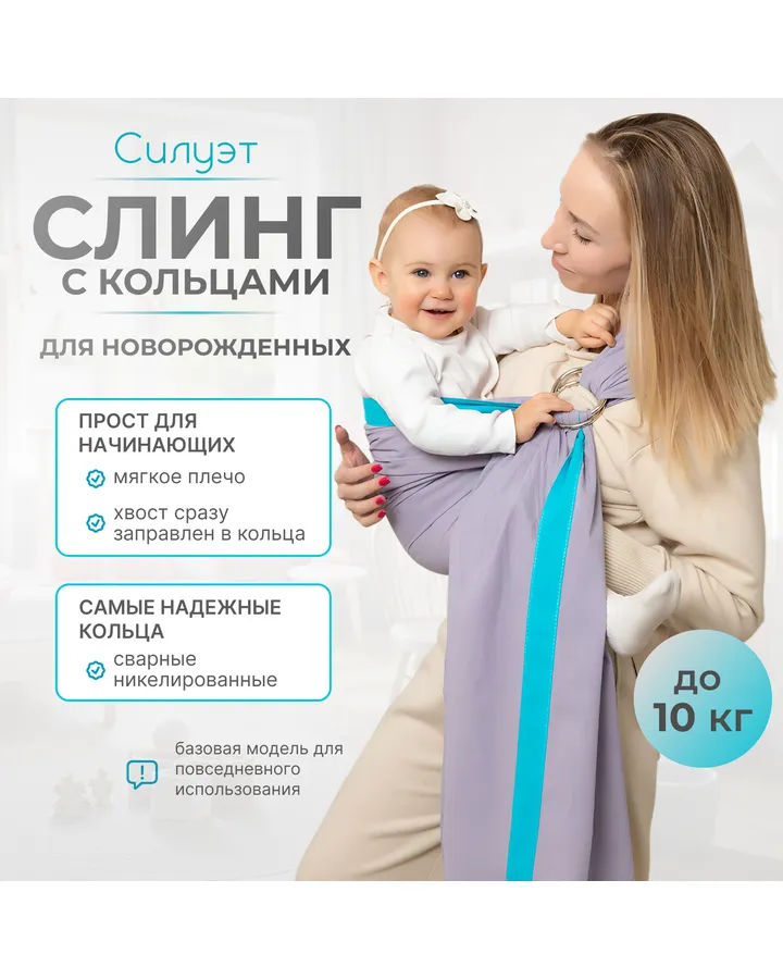 Слинг с кольцами Чудо-чадо Силуэт дымчатый хлопок с 0 мес