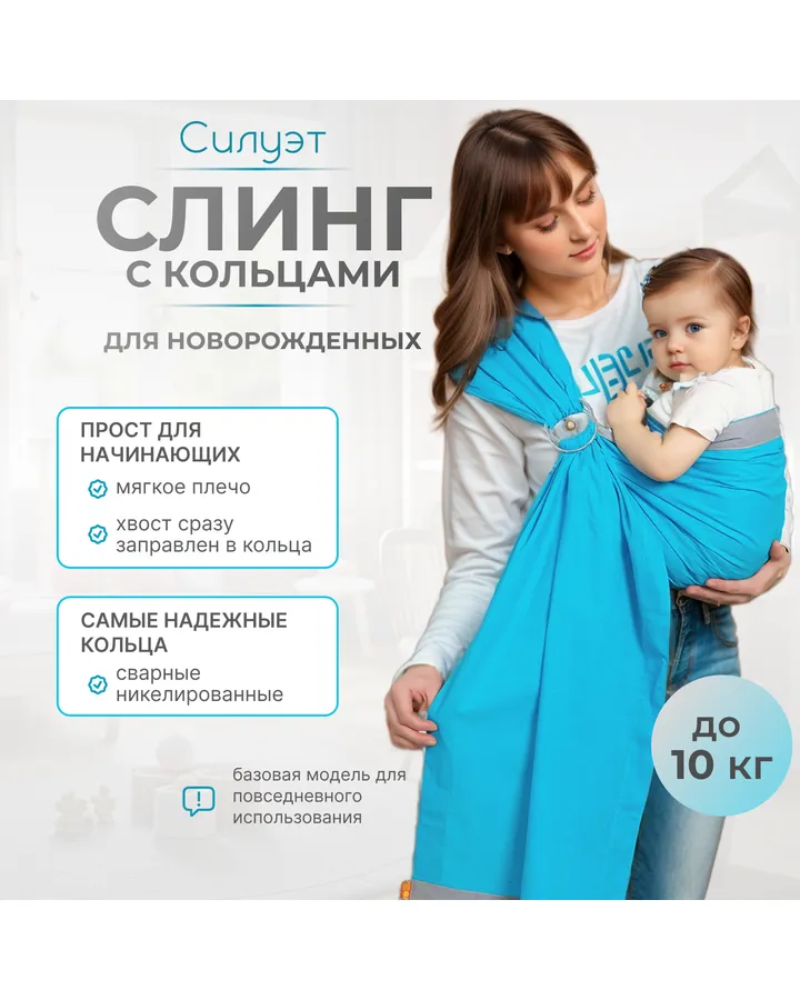 Слинг с кольцами Чудо-чадо Силуэт бирюзовый хлопок с 0 мес