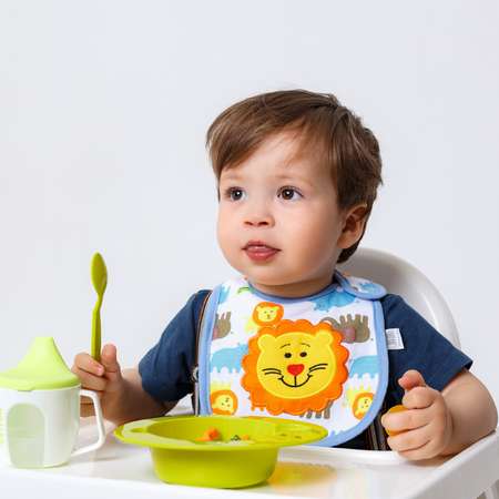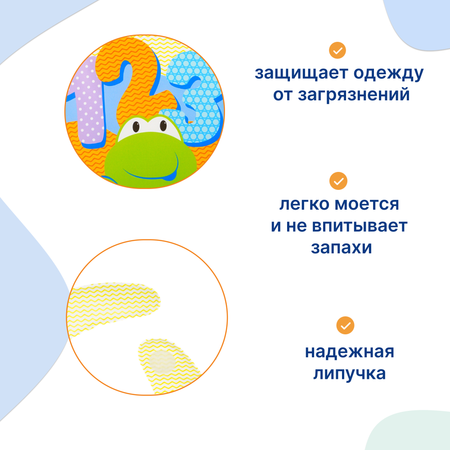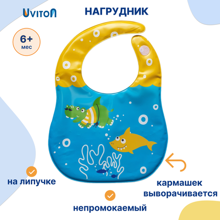 Нагрудник Uviton силикон 1 шт.Очень классный. Мягкий. Без посторонних запахов. Мы кушаем печенье в нём, все крошки падают в карман)))) и застежка хорошая