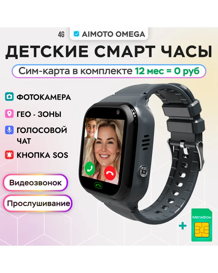 Детские смарт-часы Aimoto Omega 4g sim карта в комплекте камера и умная геолокация и видеозвонками розовыеПонравились, пока работают исправно☺