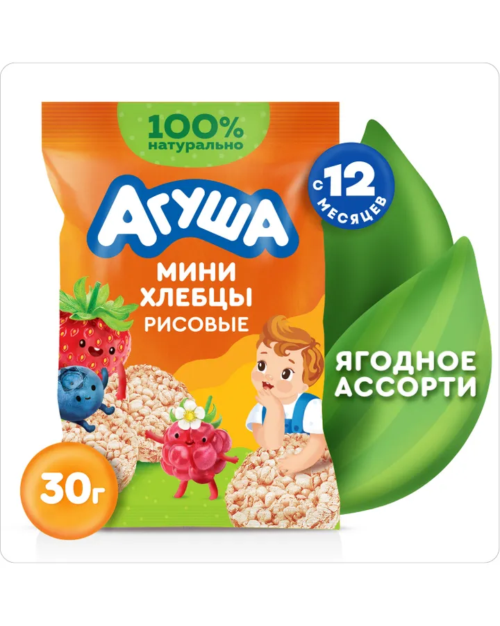 Хлебцы Агуша рисовые ягодное ассорти с 12 мес 30 г