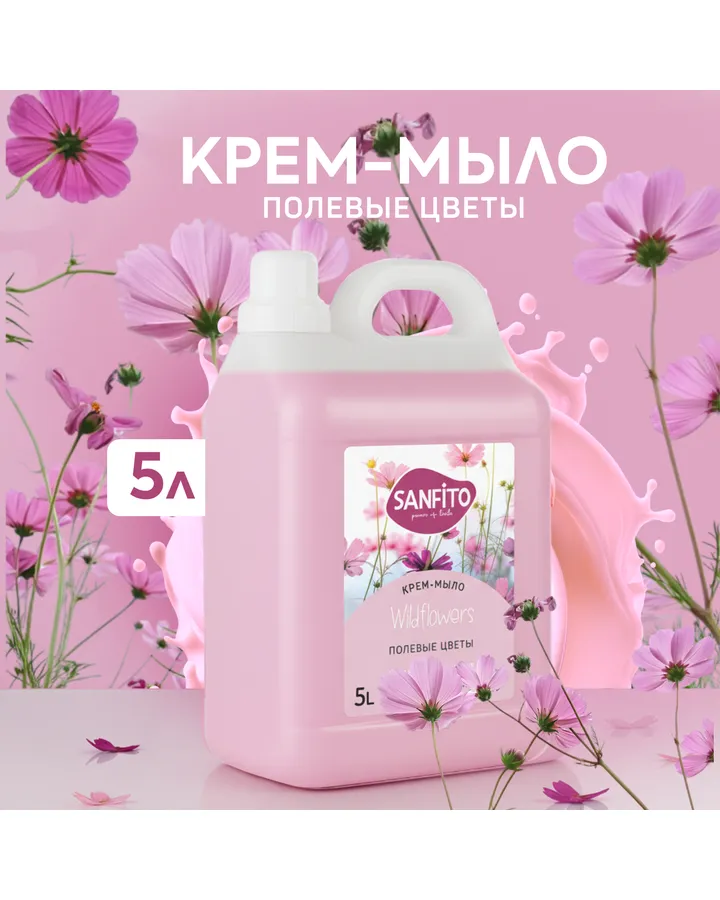 Мыло жидкое Sanfito 5000 млОчень понравился. Густой с приятным запахом. Запах не сильный, после мытья на руках не чувствуется. Пенится не сильно. Не понадобится 5л воды, чтобы смыть с рук.