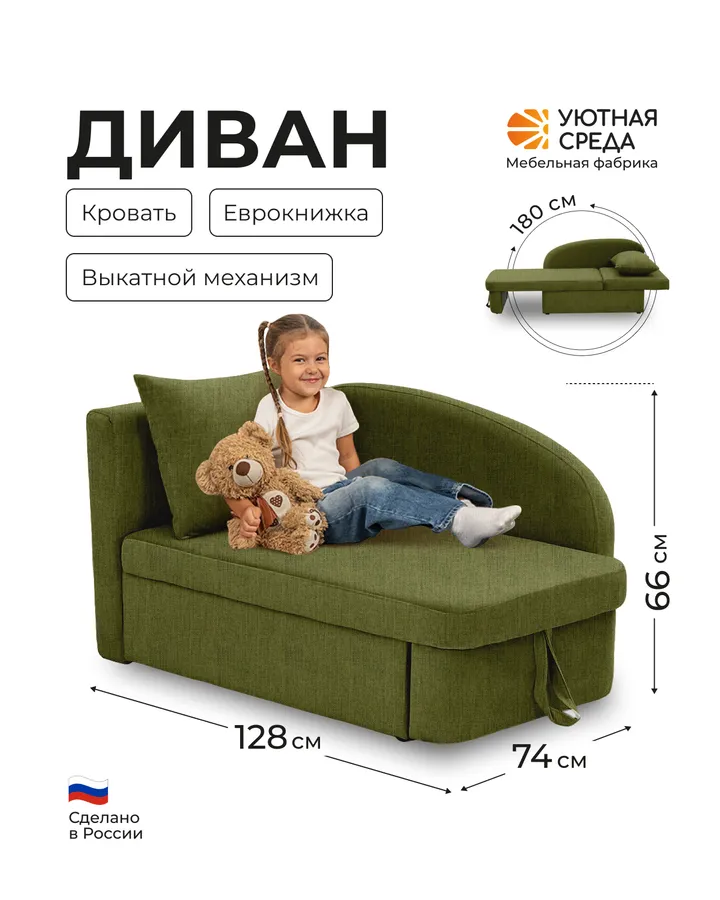 Диван Уютная среда рогожка зеленая правый зеленый