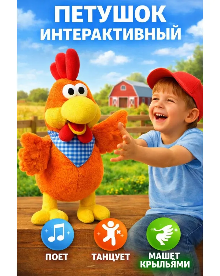 5Мягкая игрушка BalaToys Петух танцующий и поющийХороший петушок, нам 1 год, немного поиграли и бросили