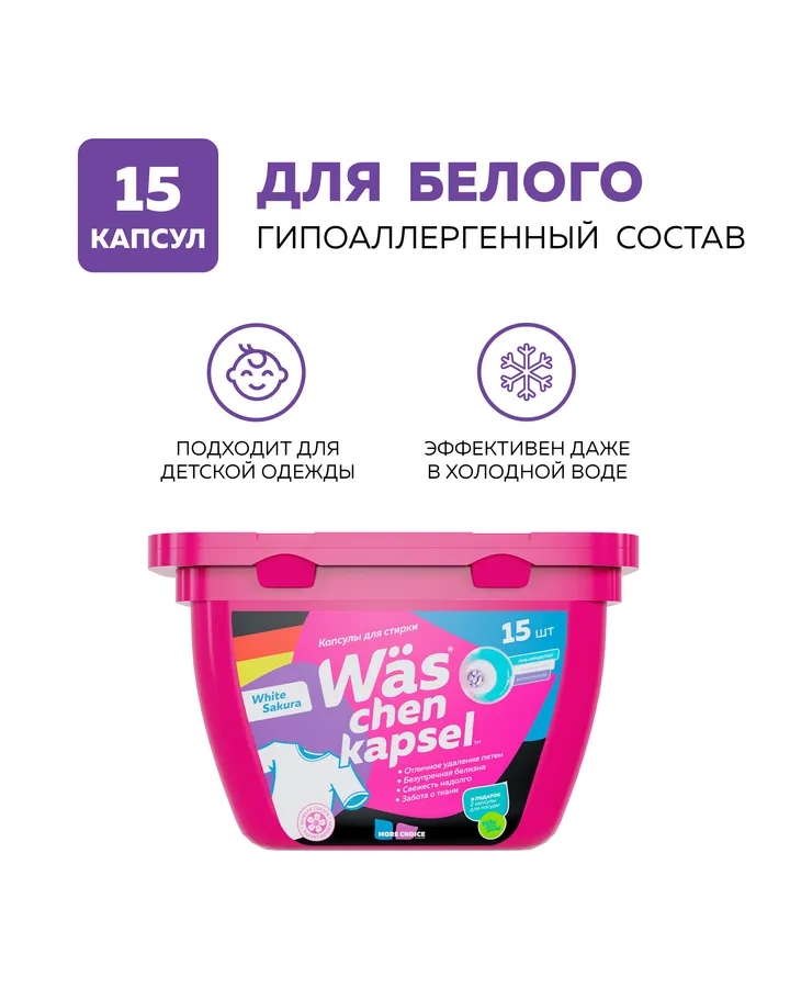 Капсулы для стирки Was БелоеВпервые использую специально средство для стирки белого белья. Но мне понравился запах. Когда стираю детские вещи, то ставлю на дополнительное полоскание. Раздражений ни у кого не увидела. Положили две таблетки для посудомоечной машины. Это было приятно :) Если у кого нет пм, можно этими таблетками запустить холостую стирку на высоких температурах для очистки машины.