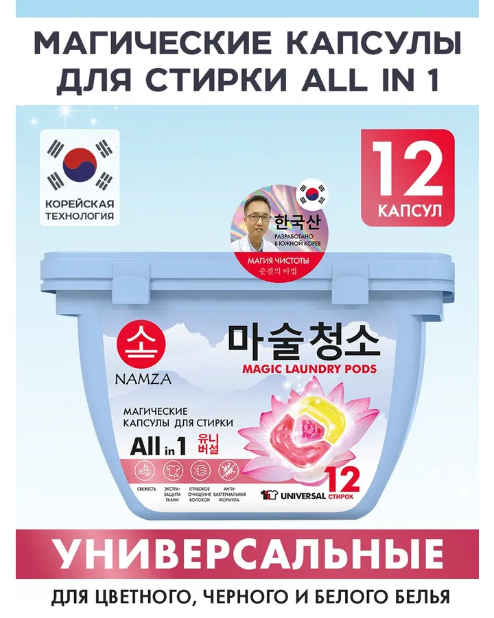 Капсулы для стирки NAMZA Family pack UNIVERSAL 0.16 кг 20 шт.Хорошо стирают, все как заявлено, одной капсулы для стирки не сильно загрязненного белья достаточно, вкусно пахнут, нет запаха жесткой химии. Очень удобная упаковка.