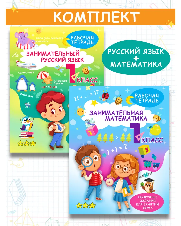 Комплект рабочих тетрадей Харвест 3 класс Математика и русский язык. Обучение счету и письмуХороший комплект беру уже второй, первый брала сыну. Буквы большие легко читать и выполнять.