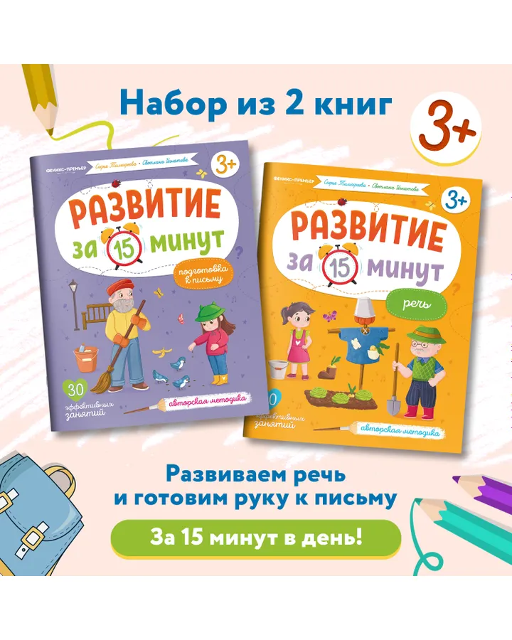 Набор из 2 книг Феникс Премьер Развитие речи и письма за 15 минут