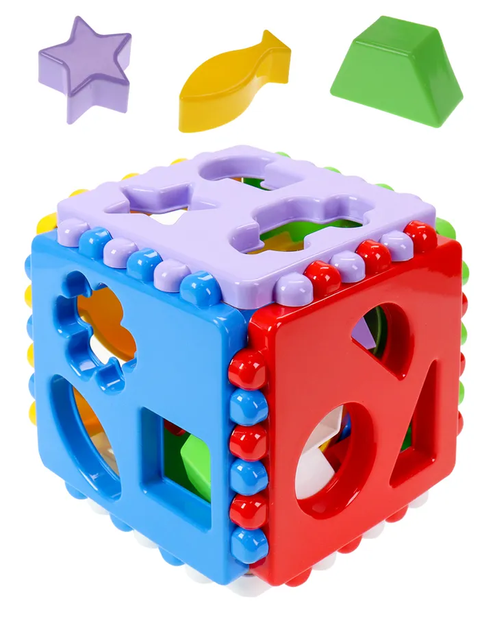 Очень нравится данный сортер, можно собрать как кубик, так и разложить их в ряд. А с животными играть в ролевые игры.