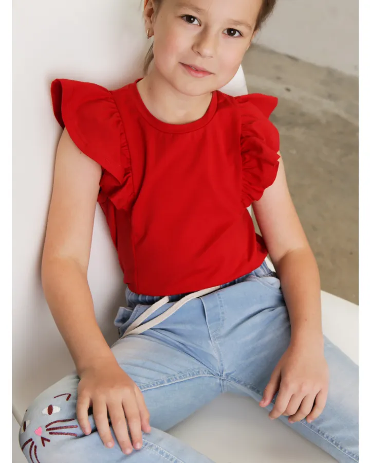 Натуральный хлопок. На полных тоже подойдёт. Средней мягкости. Не садится, не линяет. Тонкая.
