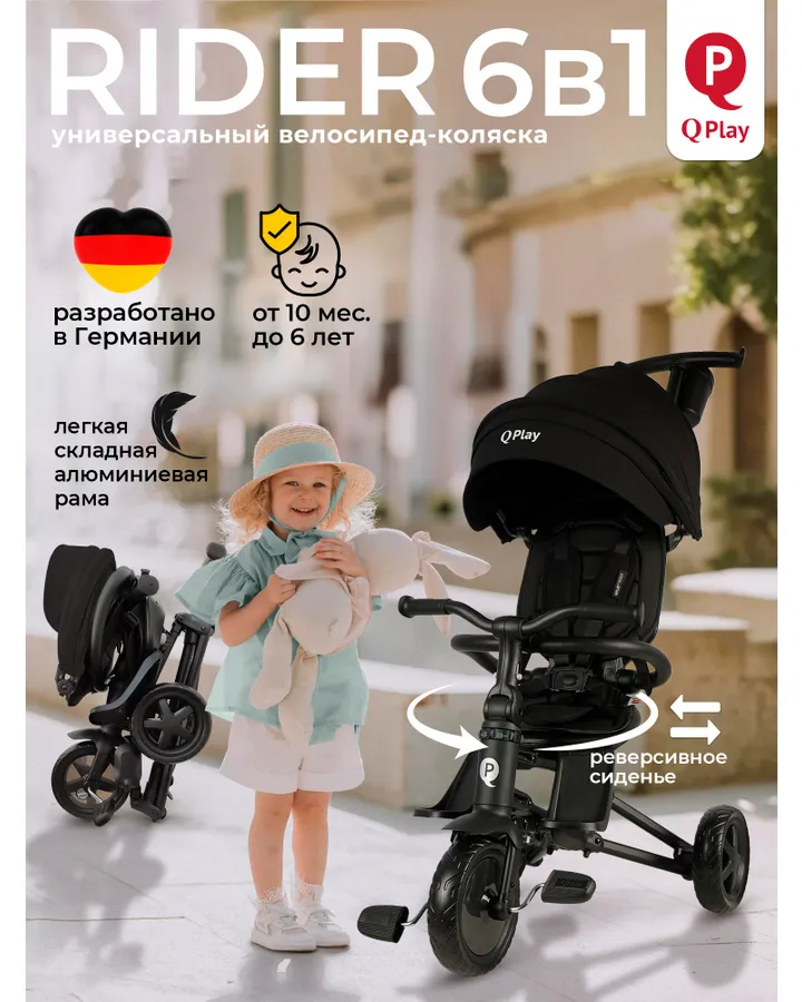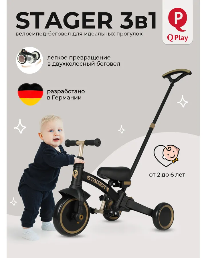 Трехколесный велосипед QPLAY 10 дюймовКрасивый, стильный велосипед. Удобная ручка для управления, корзина для мелочей.