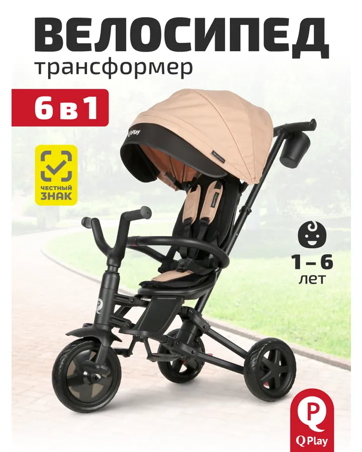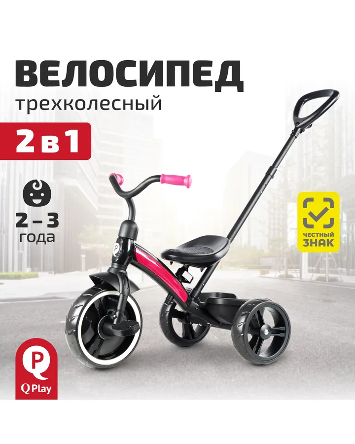 Трехколесный велосипед QPLAY 8 дюймовВремя покажет. Не разобралась как соединить руль, что бы ребёнок смог управлять поворотным колесом. Пока только с родительской ручки.