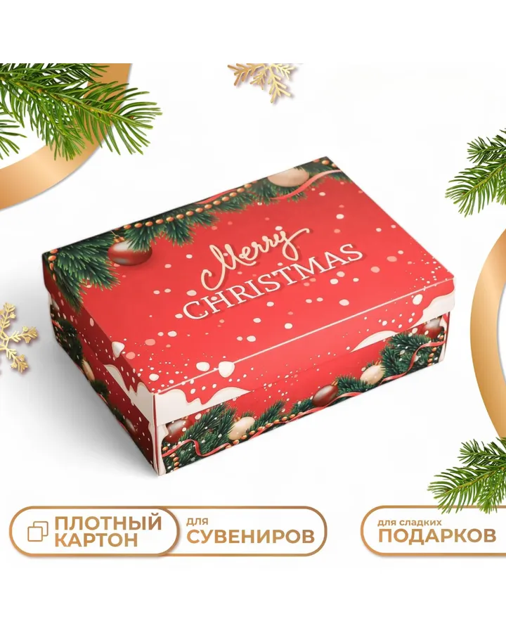Подарочная коробка, сборная UPAK LAND \"Счастливого Рождества\", 24 х 17 х 8 см