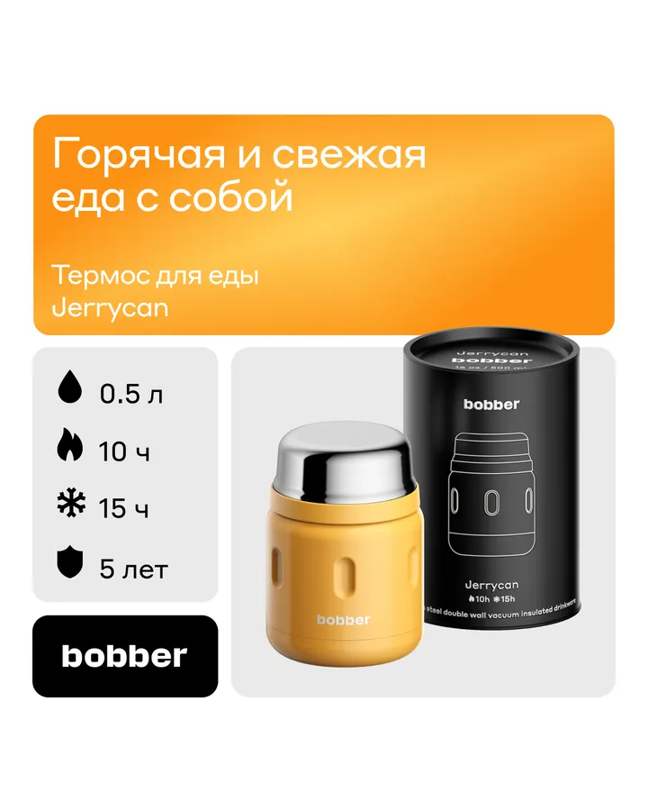 Термос для еды 500 мл Bobber Jerrycan оранжевый