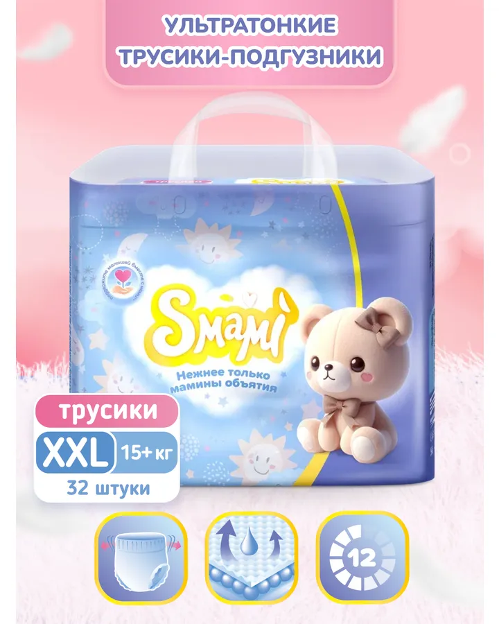 Трусики Smami L (9-14 кг) 70 шт.Мягкие, не протекают, соответствуют размеру. Минималистичный принт, не просвечивается через одежду