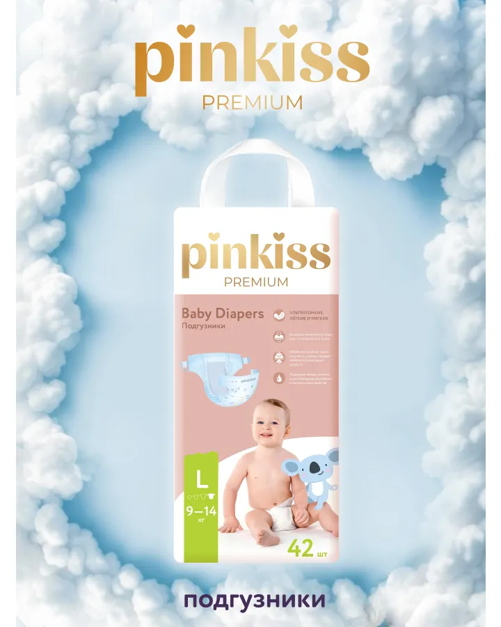 Подгузники Pinkiss Premium L (9-14 кг) 42 шт.