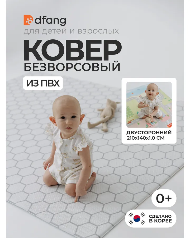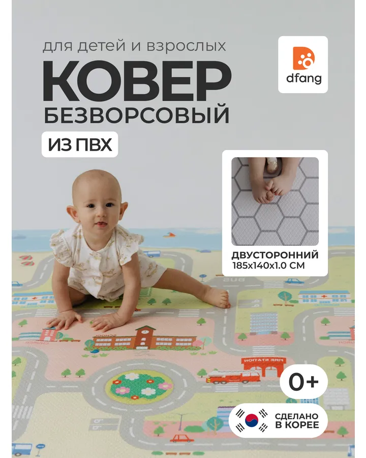 Ковёр Dfang Машинки и дороги 140 x 185 смОтличный полноценный коврик! Лучше любых складных: на них неприятно сидеть и остаются следы на теле. Этот же выигрывает во всем - мягкий, не липкий, бонусом цветная сторона с принтом города, лучший, среди всего многообразия, упакован надежно!
