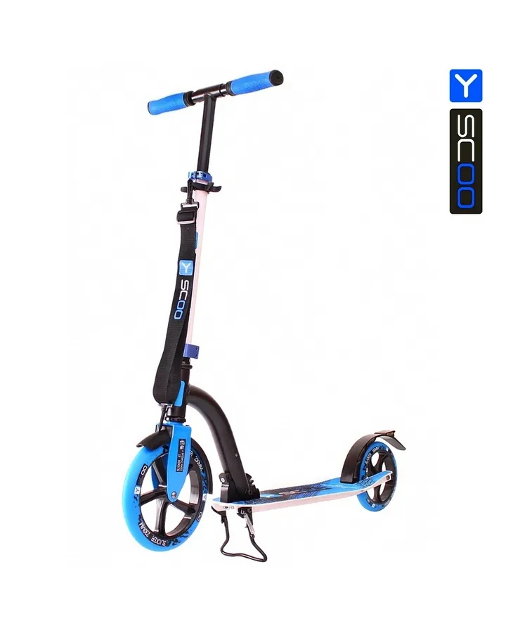 Самокат Y-Scoo двухколесныйОтличный самокат. Приходит в красивой коробке в собранном виде: разложил и поехал (только ручки прикрутить надо и все). Не дребезжит, ехать комфортно. Складывется легко, удобный ремень для переноски.