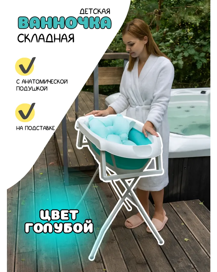Ванночка замечательная. Занимает минимум места в сложенном виде. Она длиннее обычных ванночек,которые без ножек. Купили с хорошей скидкой. После родов самое то,не надо наклоняться,поставили по середине ванной и с мужем без проблем могли подойти с двух сторон. За счет матрасика в сеточку сын и спиной был в воде,купали без пеленки,ребенку было комфортно. Единственное,сын родился ростом 51, ему без недели 3 месяца,уже купаем в обычной нашей ванной,из ванночки быстро вырос. Но это не минус,скорее индивидуально. В целом очень довольны, очень удобная ❤️