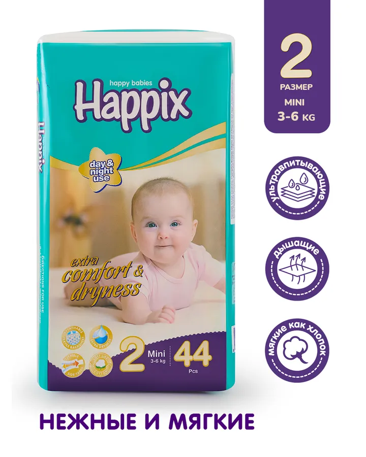 Подгузники HAPPIX Super Dry ультратонкие 4 (7-18 кг) 36 шт.Быстрая доставка, упакованы в коробку, мягкие, не протекают.