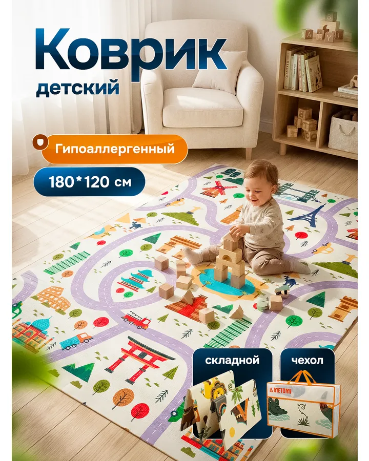 Детский складной METOMI Веселыеживотные/Звезды 180 x 150 смСупер!