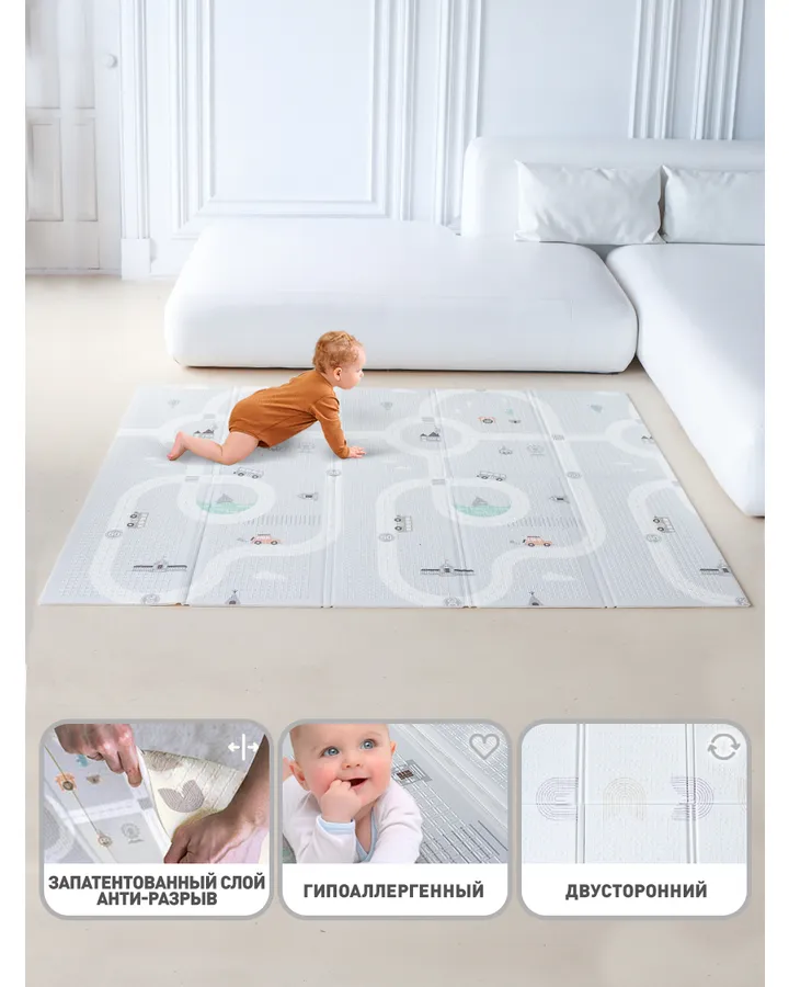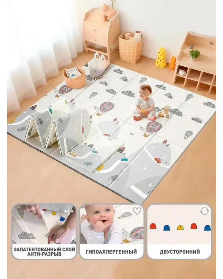 Детский складной коврик METOMI Happy animals 180 x 150 смУдоьный, теплый, легко моется, меньше щелей, в которые может забиться пыль.