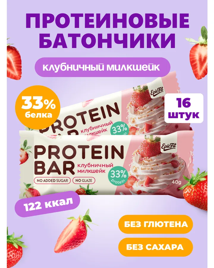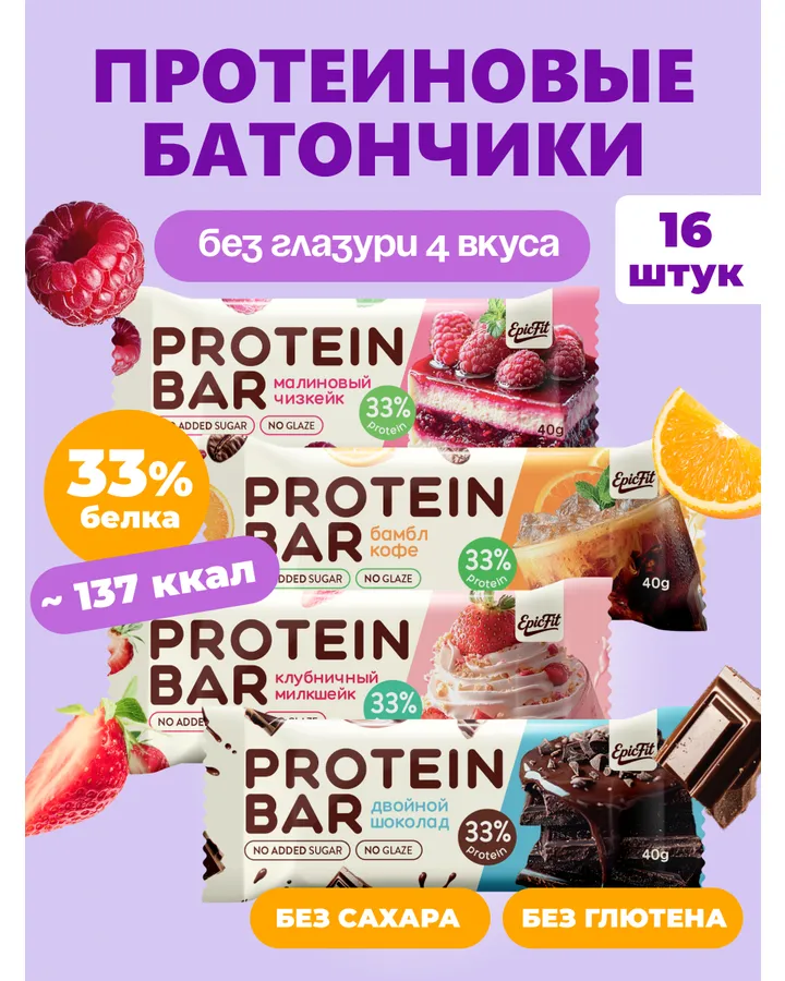 Набор протеиновых батончиков в глазури EpicFit Ассорти 4 вкуса 16шт
