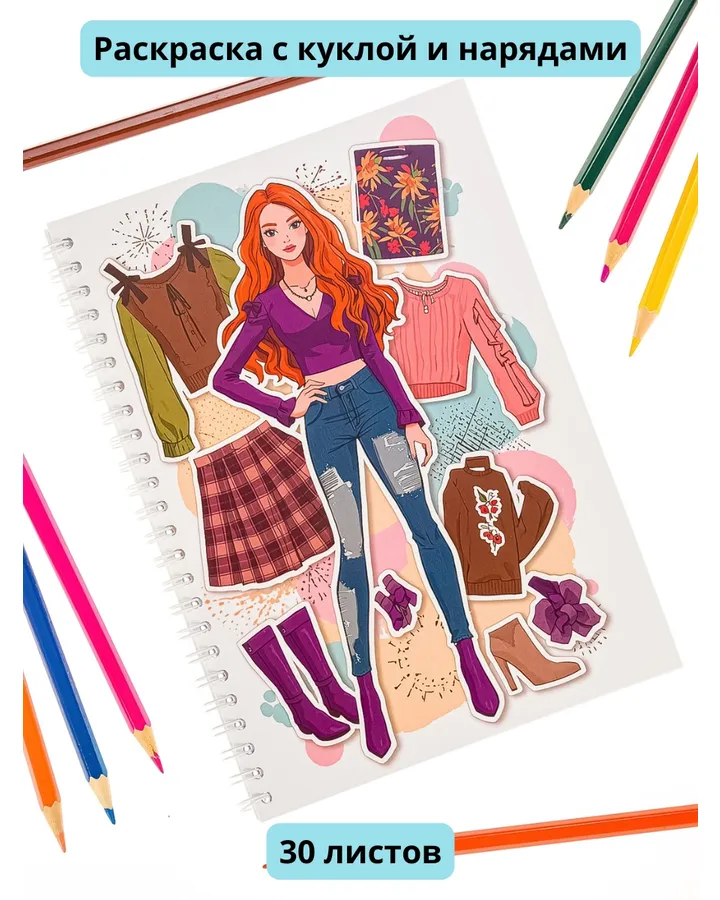 Раскраска Fashion Vector Design с бумажной куклой с одеждой для вырезания