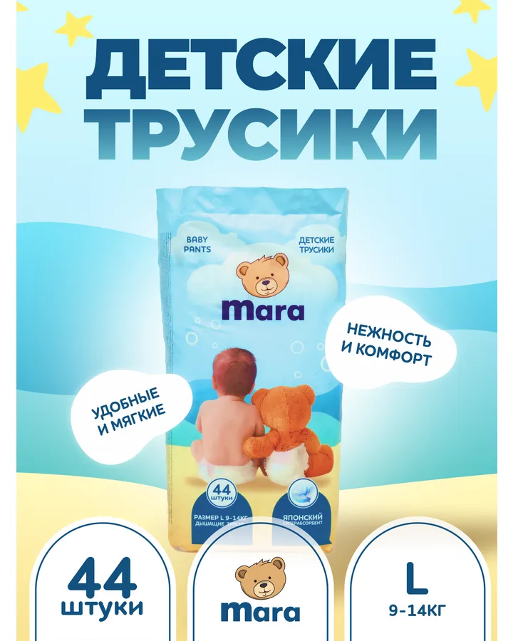 Трусики Mara L (9-14 кг) 44 шт.Цена была приемлемая, дешевле чем на маркетплейсах решила попробовать