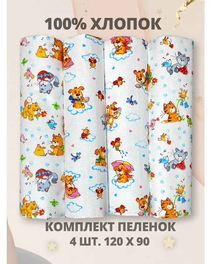 Пелёнка Делоникс Еноты + Нотки ситец 90х120 см 4 шт.