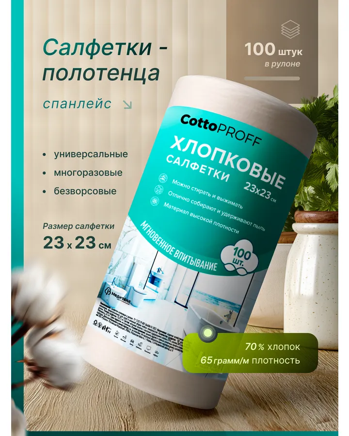 Рулонные салфетки для уборки Cotto Proff 100 шт Стандарт
