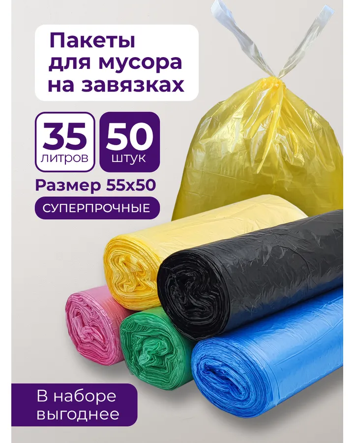Мешки для мусора PRO CLEANLY плотные мусорные пакеты 20 мкм большие 60 л набор 50 шт цветные
