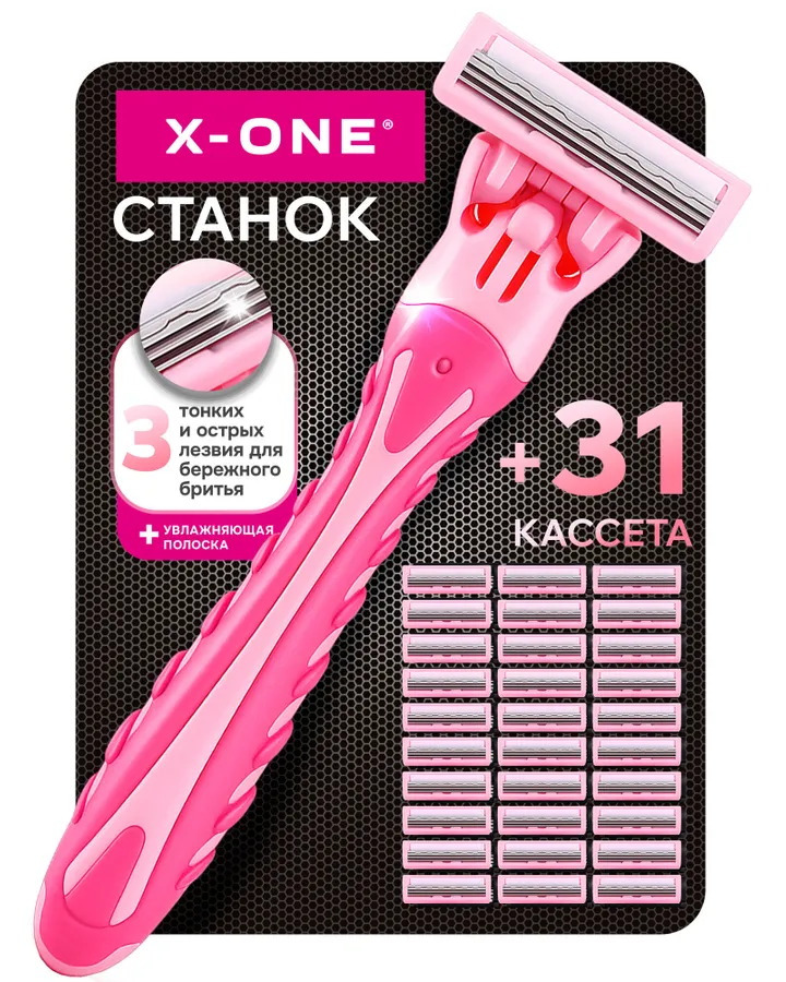 Бритва женская многоразовая X-ONE станок для бритья с 31 сменной кассетой 3 лезвия