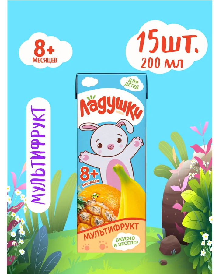 Нектар Ладушки Мультифруктовый с 8 мес 0.2 л 15 шт.