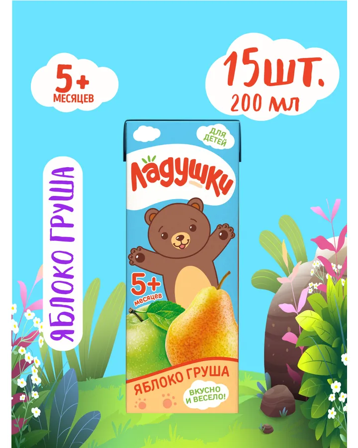 Нектар Ладушки грушево-яблочный с мякотью с 5 мес 0.2 л 15 шт.