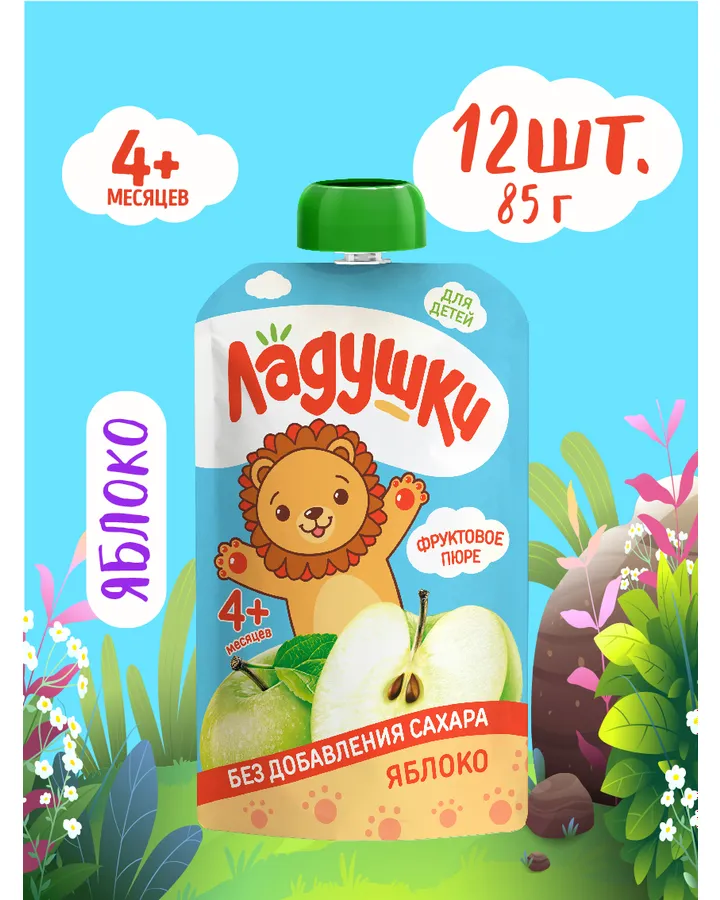 Пюре Ладушки Яблоко с 4 мес 85 г 12 упак.