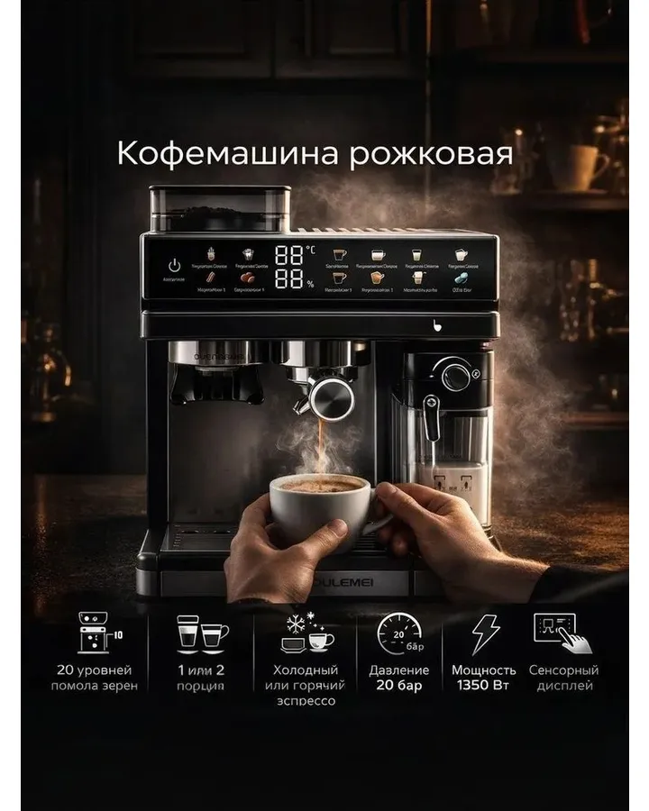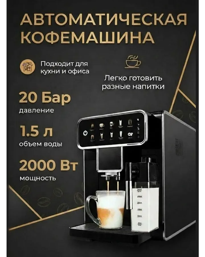 Автоматическая кофемашина 2000 Вт MN+ MN-1006 20 Бар Сенсорное управление Система очистки от накипи