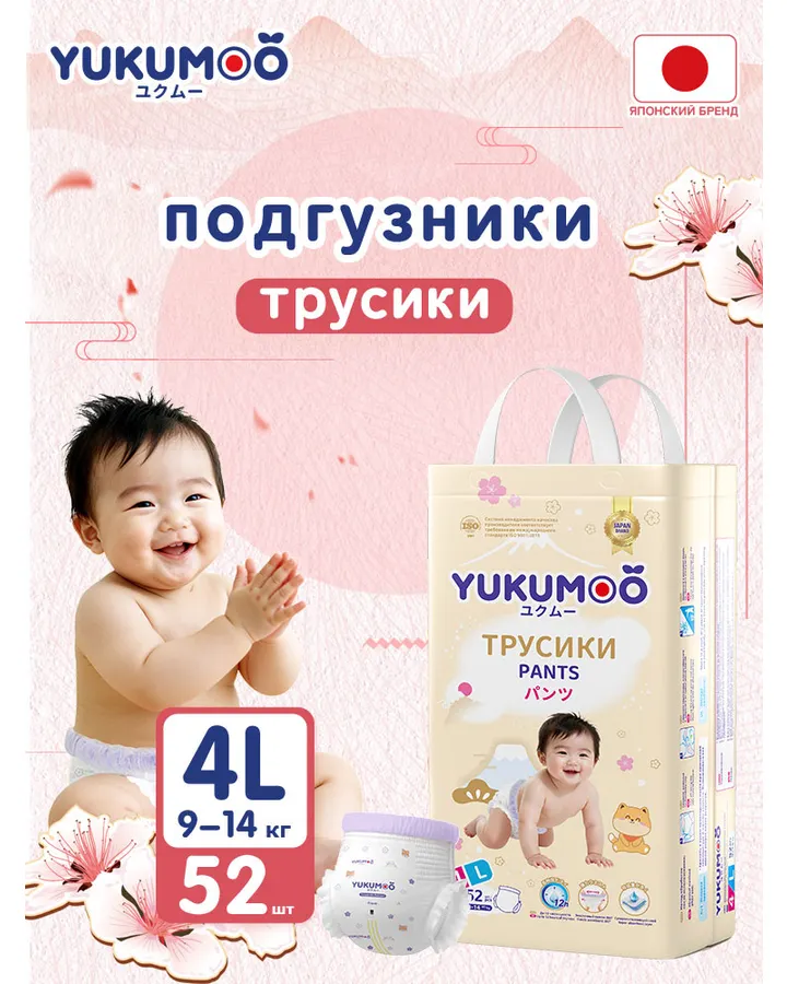 Трусики YUKUMOO ночные L (9-14 кг) 52 шт.