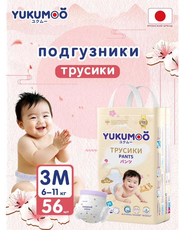 Трусики YUKUMOO ночные M (6-11 кг) 56 шт.