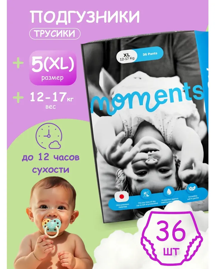 Трусики Moments Pants XL (12-17кг) 36 шт.