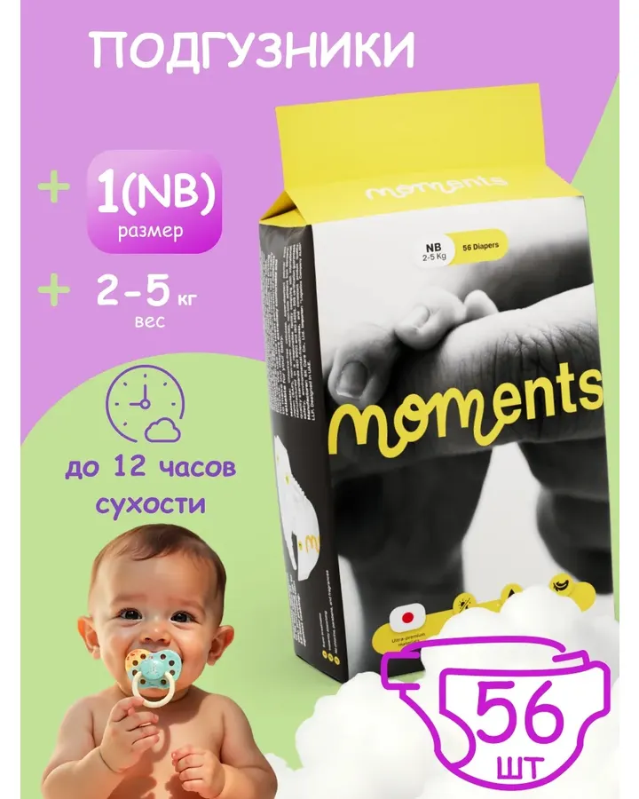 Подгузники Moments Premium для новорожденных 1 (2-5кг) 56 шт.