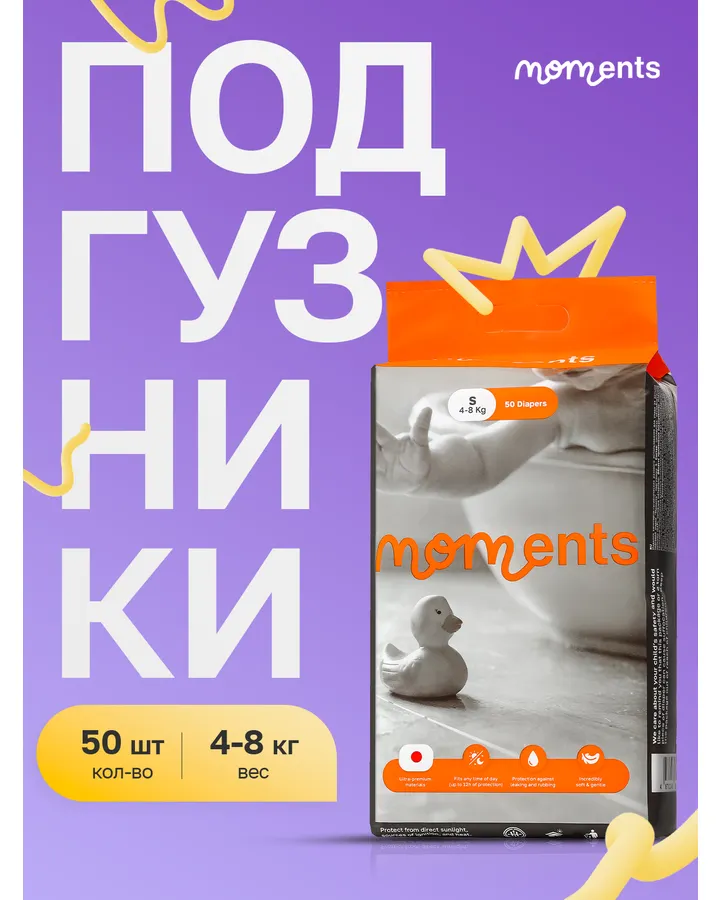 Подгузники Moments 2 (4-8кг) 50 шт.
