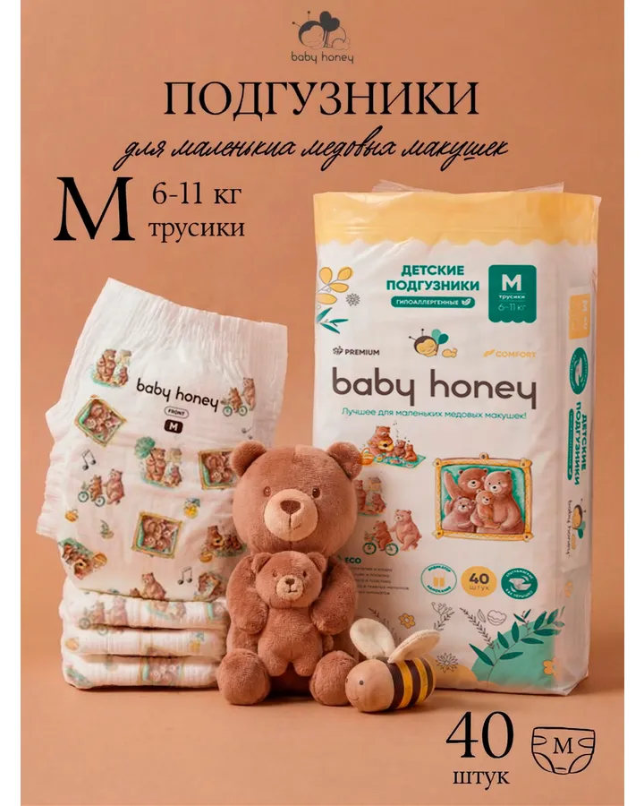 Трусики Baby Honey для новорожденных M (6-11 кг) 40 шт.
