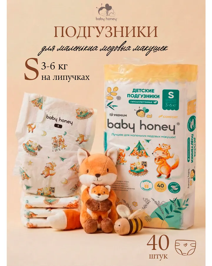 Подгузники Baby Honey для новорожденных S (3-6 кг) 40 шт.