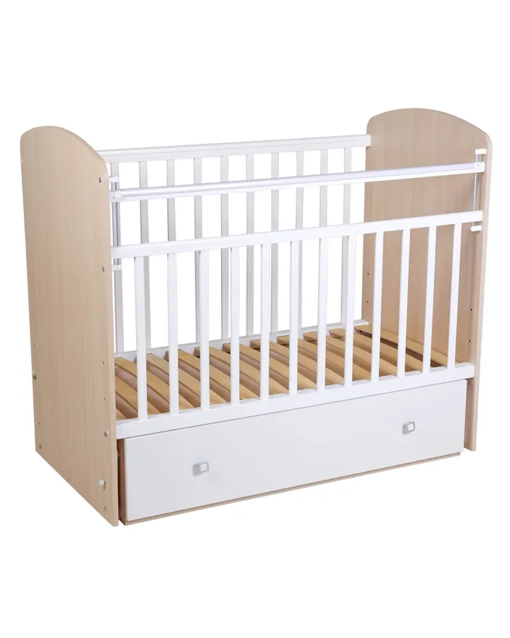 Детская кроватка Polini kids прямоугольная, без маятника (бук, белый)