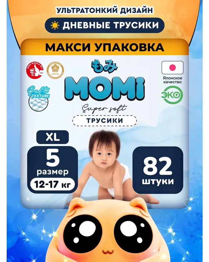 4Трусики Momi Comfort Care M (6-11 кг) 72 шт.Трусики хорошие, но снимаю одну звезду за тугую резинку, хотелось бы помягче.
